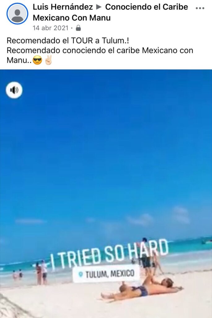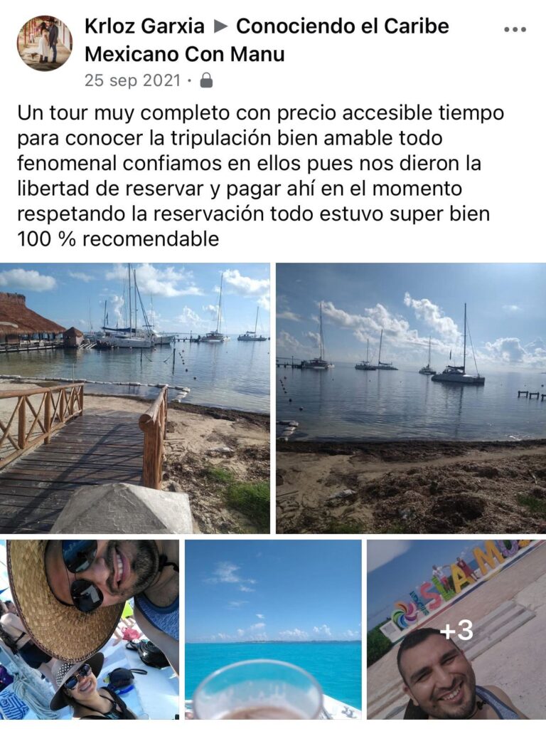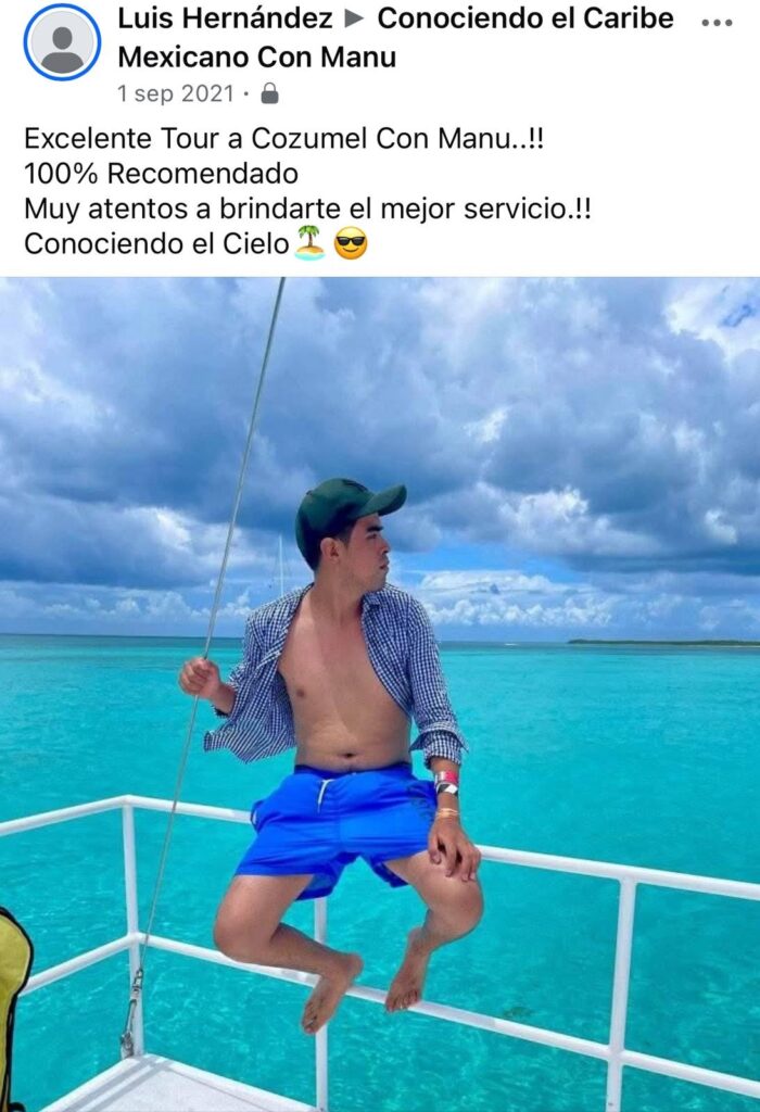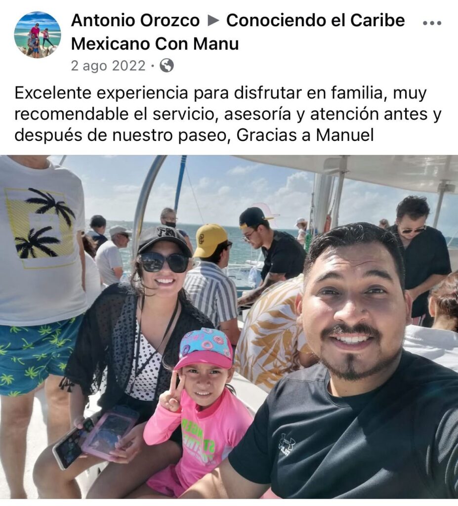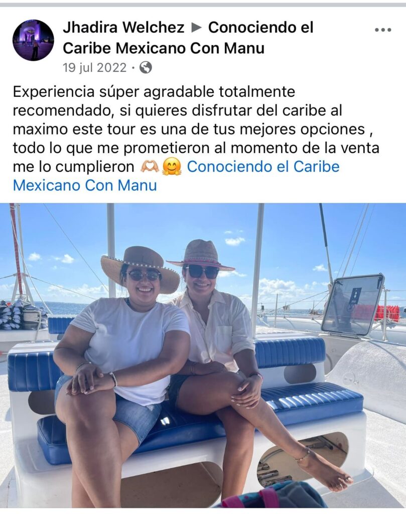Las experiencias hablan por sí solas. Nuestros viajeros comparten sus recuerdos, aventuras y momentos inolvidables descubriendo el Caribe Mexicano con Manu. Sus palabras reflejan la pasión y el compromiso que ponemos en cada recorrido.